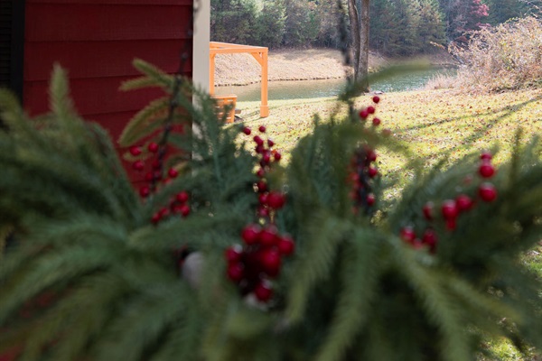 The cabin transforms for the season — warm lights, festive touches, and cozy holiday magic in every corner.